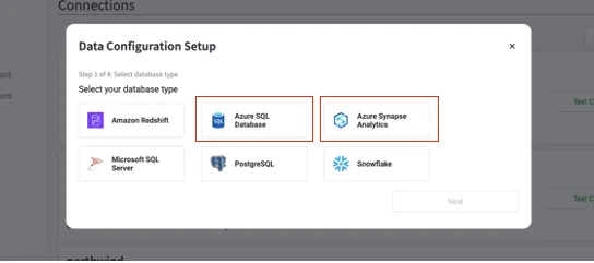 Click on the 'Azure SQL Database or Azure Synapse Analytics' box, and you will be taken to a dialog box to configure the connection to the database.