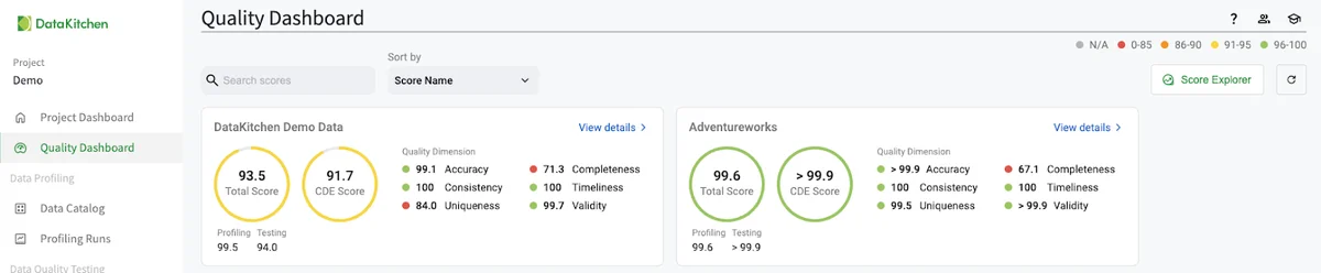 Clicking on the 'Score Explorer' in the UI allows you to create a custom data quality dashboard based on specific elements such as Critical Data Element (CDE), business goal, data source, data customer, and other metadata. With the right dashboards, your organization can move confidently toward its data-driven goals and ensure that decisions are built on a solid foundation of high-quality data. You can gain influence and success in your organization as a data quality leader!